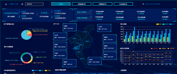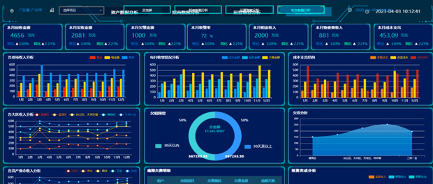 通过图表、地图、动态指标等方式构建可视化数据驾驶舱,关键指标实时呈现,辅助管理层快速掌握各项目和整体业务运营状态